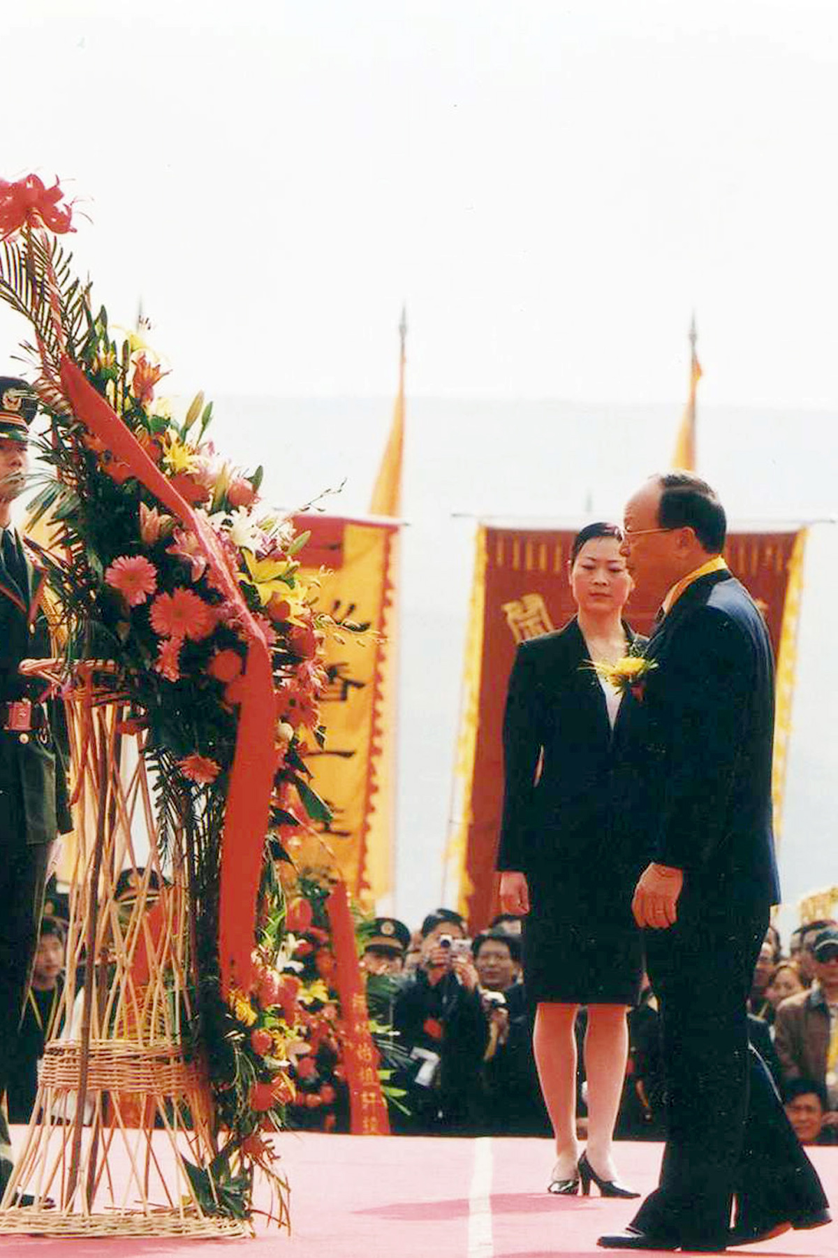 2005年清明节,中国国民党中央委员会常务委员蒋孝严参加清明公祭典礼,惊现花篮